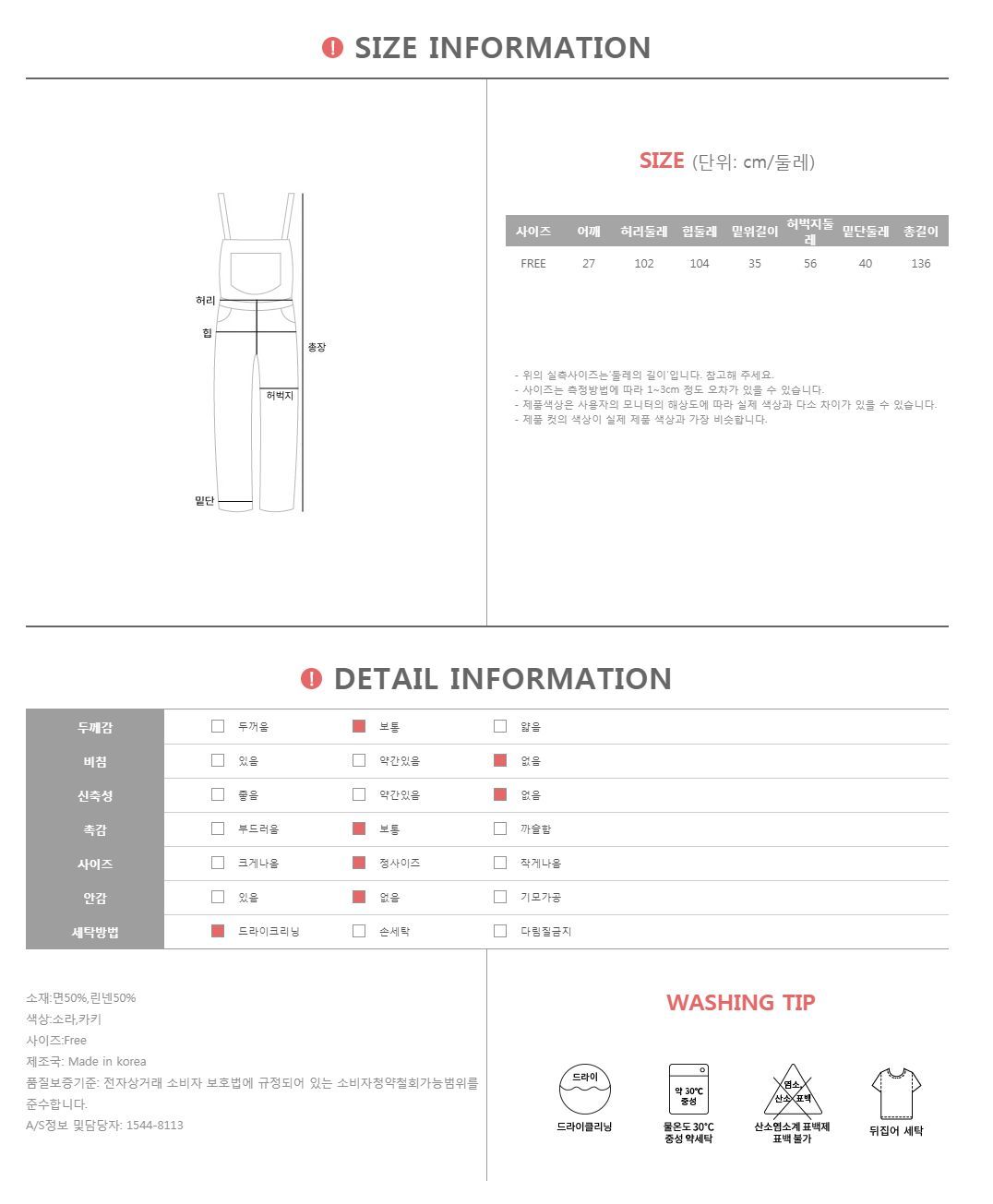 캐주얼한 스타일을 연출해주네요! 면과 린넨 혼방 소재로 시원한 소재감이 돋보이는 점프수트예요!