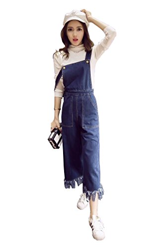 -. Title : ELPIS レディース カットオフ 切りっ放し デニム サロペット オーバーオール ワイド パンツ ブルー S M L XL