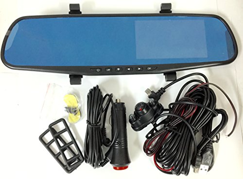 -. Feature : Review Mirror Dual Channel AV DVR / Screen: 4.3" / Supports 32GB / Wide-Angle Lens / Built in reverse camera