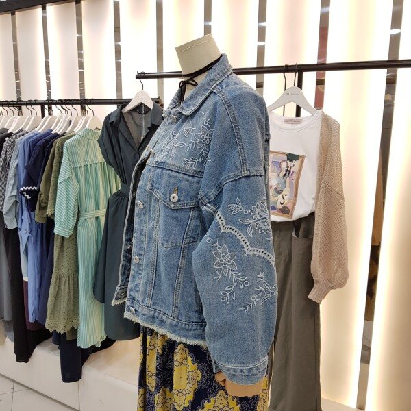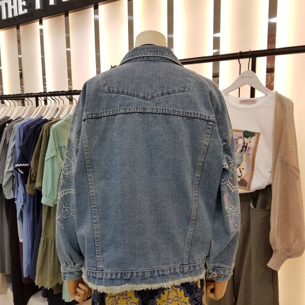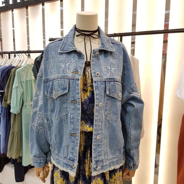 전면과 소매부분 자수 포인트가 있는 데님자켓입니다.빈티지한 워싱에 밑단 수술장식이 있어 더욱 유니크한 느낌을 줍니다.여러 아이템과 매치하여 트랜디하게 연출해보세요.