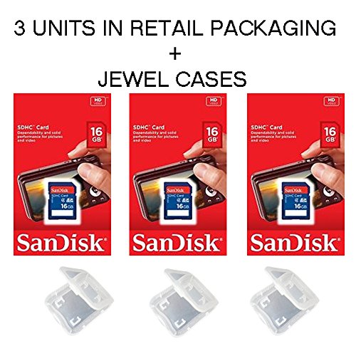 -. Binding : Electronics -. Brand : SanDisk -. EAN : 9349220002465 -. Feature : In Retail Packaging, perfect for resale / SD cards are fully compatible with all SD-compliant devices / Video rating of class 4 (720p) for HD video for 8 GB - 64 GB capacities / Writeable label for easy identification and organization // Security: Built-in write-protect switch prevents accidental data loss / Bonus Jewel cases for storage when not in use -. Label : SanDisk -. Manufacturer : SanDisk -. Model : LYSB0174DBC34-CMPTRACCS -. MPN : LYSB0174DBC34-CMPTRACCS -. PackageQuantity : 1 -. PartNumber : LYSB0174DBC34-CMPTRACCS -. ProductGroup : PC Accessory -. ProductTypeName : COMPUTER_COMPONENT -. Publisher : SanDisk -. Studio : SanDisk -. Title : Lot of 3 SanDisk 16GB SD SDHC Class 4 Flash Memory Camera Card SDSDB-016G-B35 Pack + ( 3 Jewel Cases ) …
