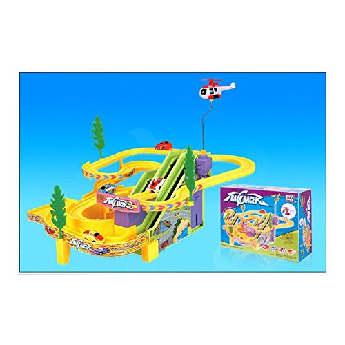 -. Feature : Flip Action Ramp / Music & Sounds / Control Speed / 4 Racing Cars & Flying Helicopter / Advanced Functions