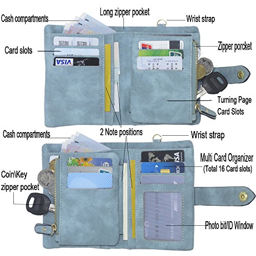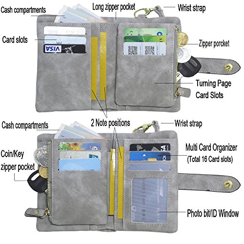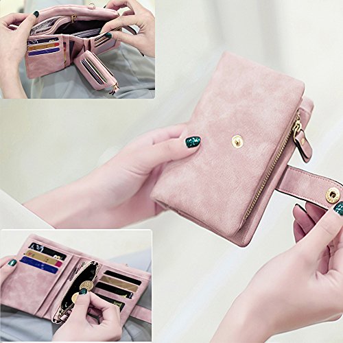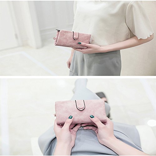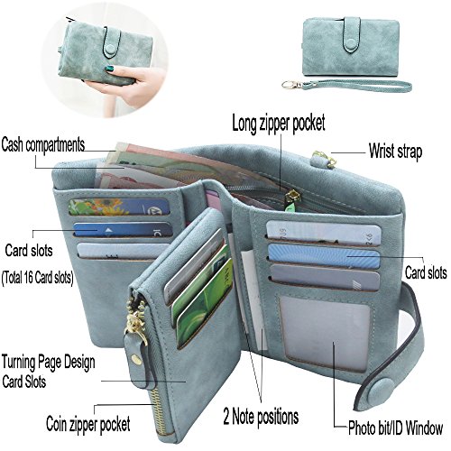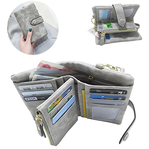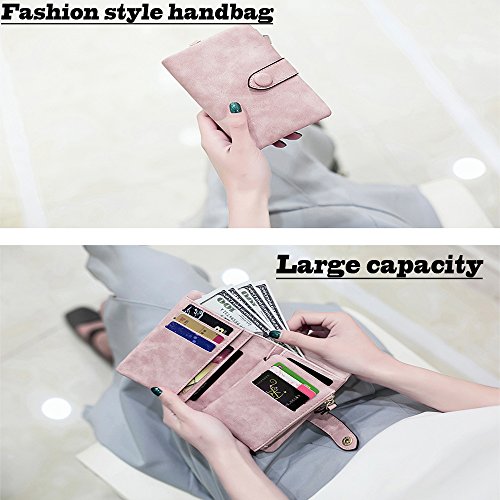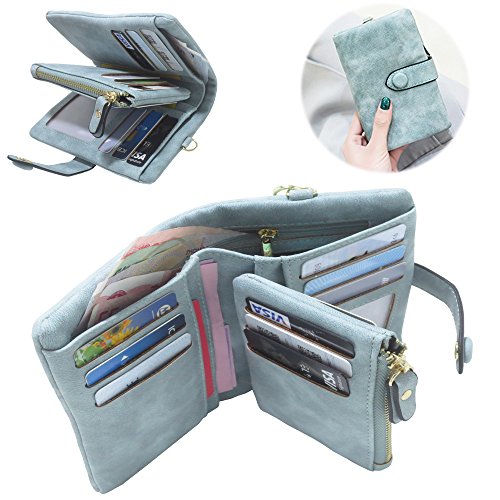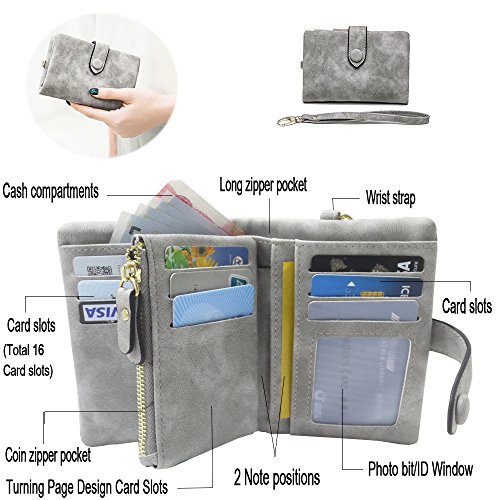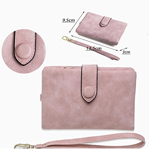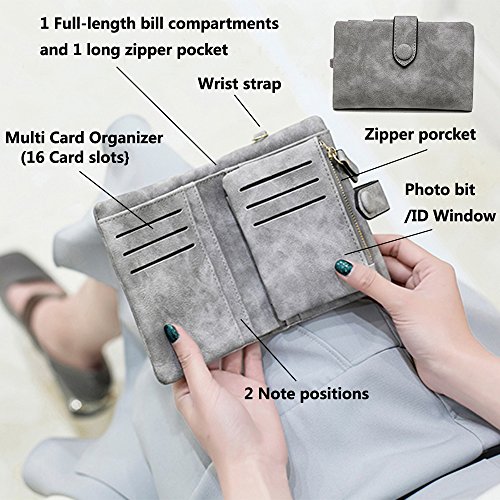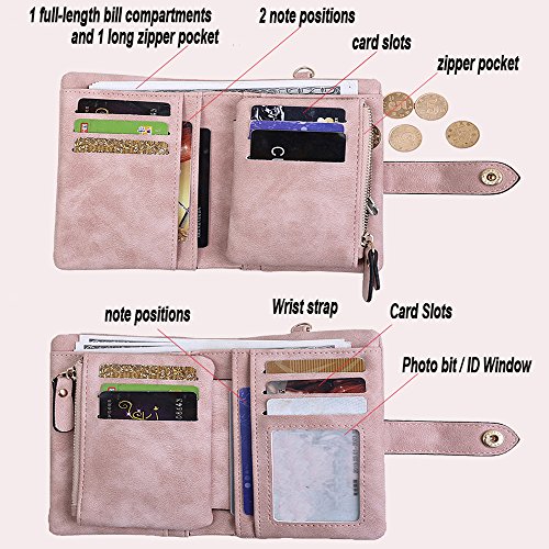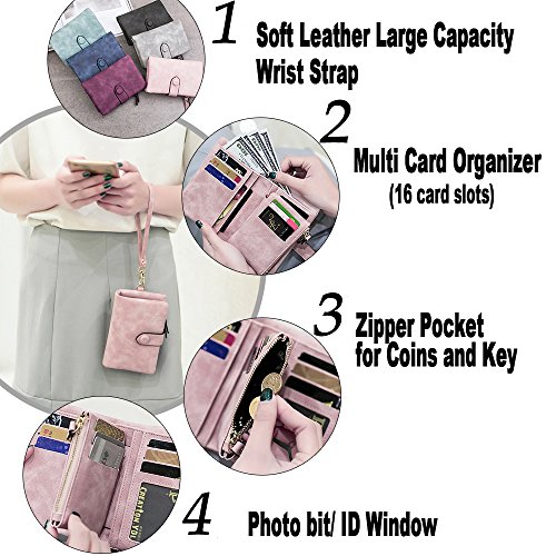 Binding : Apparel Product Description 1. Colors: Pink, Mint green,Grey Size: 5.31x 3.74 x 1.18 inches (13.5X9.5X3CM) Weight:0.14KG 2.Structure: 15 Credit Card Slots and 1 photo slot,1 full length bill pockets, 1 long zip pocket, 1 zipper pocket for coins,1 wrist band. 3.Characteristic: Stylish Bifold design, elegant leather buckle, smooth zippers, exquisite hardware accessories, all hand-made leather,very upscale atmosphere throughout the wallet,for Dating,Working Place,ladies out for dinner, party, holiday, Shopping,Traveling 4. This wallet choose high-quality durable metal zipper and hardware, with high corrosion resistance, corrosion resistance and anti-fading performance.The zipper closes very smoothly, you can stay organized anytime and get easy access to what you need. 5.Best Gift Great buy for yourself or as a gift for her on Birthday, Anniversary, Mothers' Day,Thanksgiving, Christmas,Valentine's Day,Halloween,Thanksgiving,Independence Day etc.