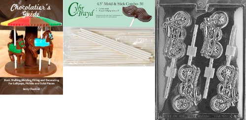 Cybrtrayd 'Motorcycle Lolly' Kids Chocolate Candy Mold with 50 4.5-Inch Lollipop Sticks and Chocolatier's Guide