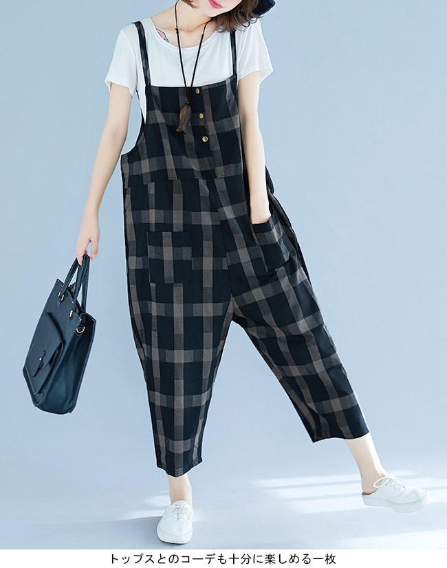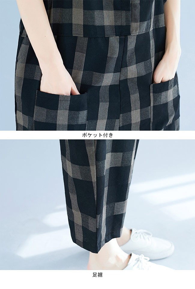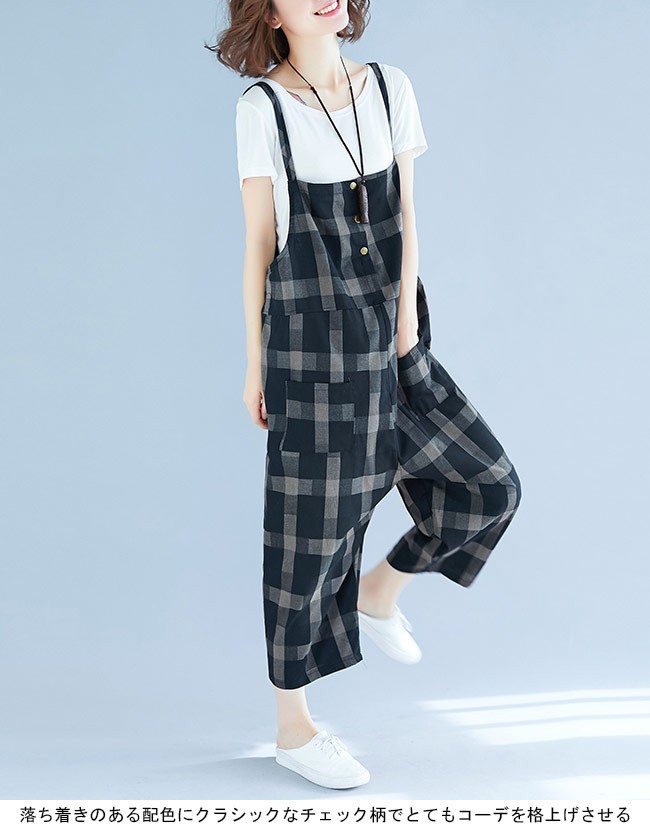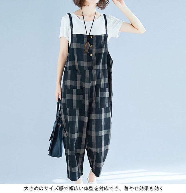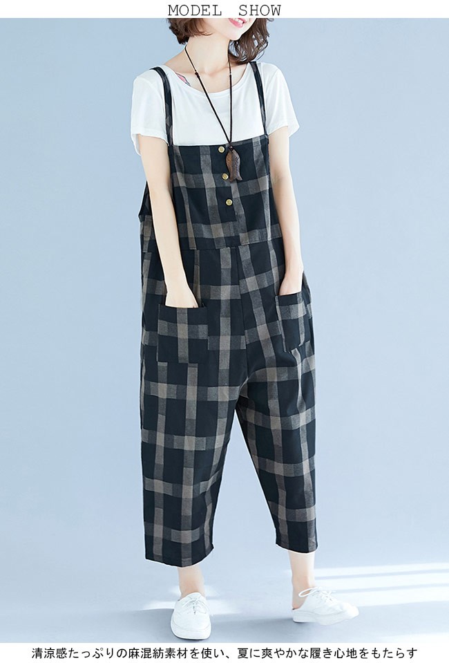 サロペット 体型カバー レディース チェック柄 サロペットパンツ 九分丈 ワイドパンツ 女性用 ボトムス ゆったり 夏物 薄手 春秋物 レトロレディース用のサロペットが登場清涼感たっぷりの麻混紡素材を使い、夏に爽やかな履き心地をもたらす可愛らしいシルエットにカジュアルなデザインで青春の香りを漂わせる落ち着きのある配色にクラシックなチェック柄でとてもコーデを格上げさせる大きめのサイズ感で幅広い体型を対応でき、着やせ効果も効くトップスとのコーデも十分に楽しめる一枚カラー:写真色素材 麻混紡サイズ(cm) L XLL バスト110 ヒップ114 ウエスト108XL バスト118 ヒップ122 ウエスト116ご注意:※サイズは平置きサイズです。素人採寸ですので、若干の誤差がございます、ご了承ください。