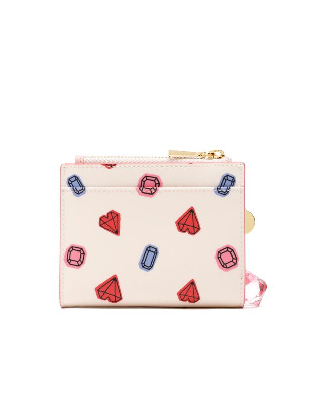 쁘띠 다이아몬드 패턴과, 보석 참이 포인트인 한 손에 들어오는 컴팩트한 사이즈와 휴대가 간편하고, 넉넉한 수납공간으로 실용적인 반지갑입니다.