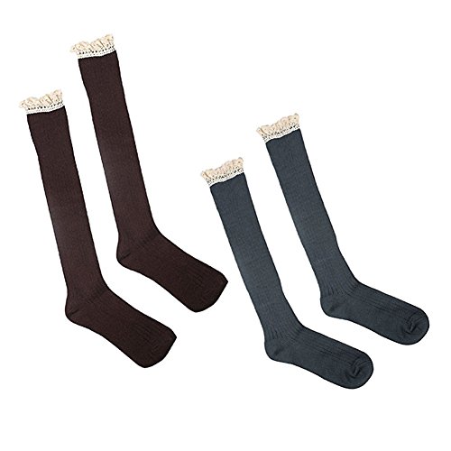 -. Title : Roniky 5 Colors Women Cotton Crochet Boot Socks with Lace Trim Knit Knee High Stockings