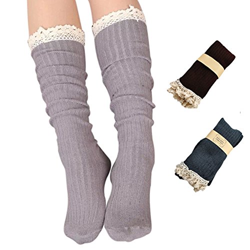 -. Feature : Material: blended cotton, stretchy, warm yet breathable / Nice lace trim design, adds classical style / Size: Length:40cm,Socks at the end of about 18~20cm / Easy Care: Machine-washable, extremely color-fast and very resistant to deterioration from sunlight exposure / Pakcage includes :1, 5 pack include black, light grey, khaki,brown and deep grey. 3 pack include black, light grey, khaki. 2 pack include brown and deep grey. All the socks are packed with Roniky brand package.