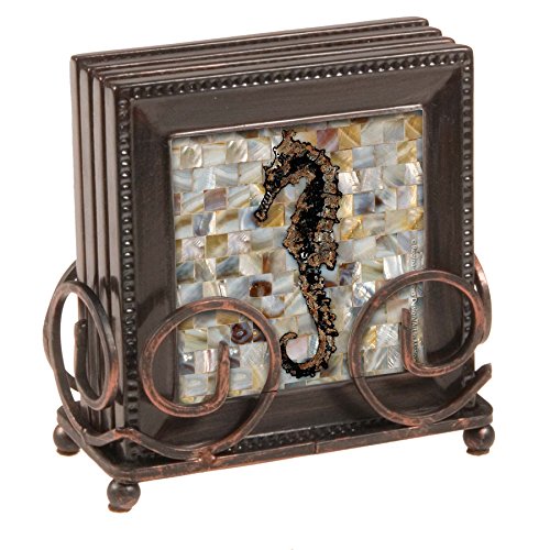 Thirstystone 4-Piece Coaster Set with Holder Included Seahorse