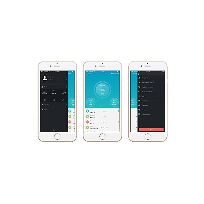 Amerzam 전자 체중계 Bluetooth 체조성 계건강관리 간단 측정 다이어트 180kg계량초 박강화 유리