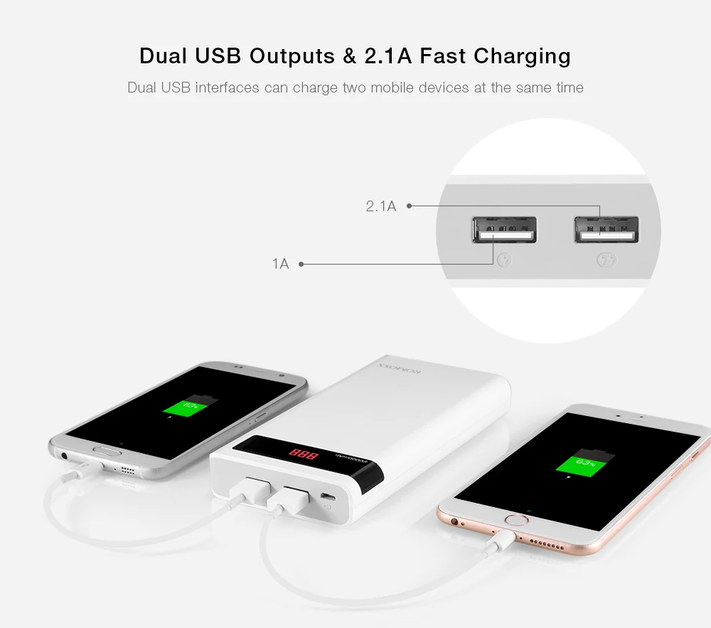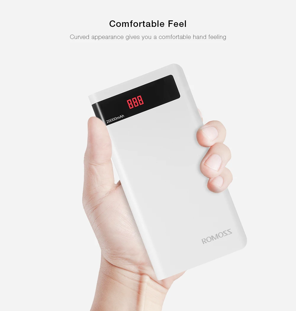 ROMOSS Sense 6P 20000mAh Power Bank Portable External Battery 2.1A Fast Charging with LED Digital Display Dual USB