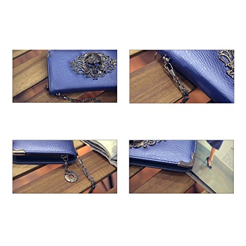 -. Brand : Lonson -. Color : multicoloured -. Department : womens -. Feature : Soft PU leather wallet, durable and fashionable. / Vintage wallet pouch to comfortably fit cards, IDs, cash, receipts. / This fashion women wallet features 8 credit card slots, 5 large slot pockets and 1 zipper pocket. / This wallet with wrist strap- makes more easy to carry. / Lining: each batch of material may be different. -. PackageQuantity : 1 -. ProductGroup : Shoes -. ProductTypeName : HANDBAG -. Title : Lonson® Women Clutch Handbags Punk Skull Head Rivet Long Leather Purse Wallet Bag
