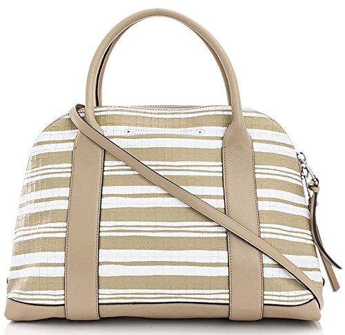 -. Brand : Coach -. Color : Fawn, White -. Department : womens -. Feature : Made by Coach and retails for $458 / Genuine woven leather in fawn and white / Silver hardware / Double leather handle straps with long removable adjustable strap / Approx. 15 inches wide, 10 inches tall and 6 inches deep -. Model : 31004 -. ProductGroup : Shoes -. ProductTypeName : HANDBAG -. Size : Medium -. Title : Coach Bleecker Woven Leather Preston Convertible Satchel Bag 31004 Fawn White