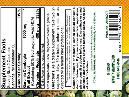 -. Binding : Health and Beauty -. Brand : TNVitamins -. Feature : FREE SHIPPING with any $30 Order / Premium Garcinia Cambogia. / Weight control support.* / 1000 Mg In Each 2 Capsule Serving. -. IsAdultProduct : 0 -. Label : Total Nutrition -. LegalDisclaimer : *Information provided is intended for general knowledge. It is not a substitute for professional medical advice or treatment for specific medical conditions. Always seek the advice of your physician or other qualified health care provider with questions you may have. Any information provided is not intended to diagnose, treat, cure or prevent any disease. This statement has not been evaluated by The USFDA. This product is not intended to diagnose, treat, cure or prevent any disease. -. Manufacturer : Total Nutrition -. MPN : AB6622 -. PackageQuantity : 1 -. PartNumber : AB6622 -. ProductGroup : Health and Beauty -. ProductTypeName : HEALTH_PERSONAL_CARE -. Publisher : Total Nutrition -. Size : 60 Capsules -. Studio : Total Nutrition -. Title : TNVitamins Garcinia Cambogia with HCA
