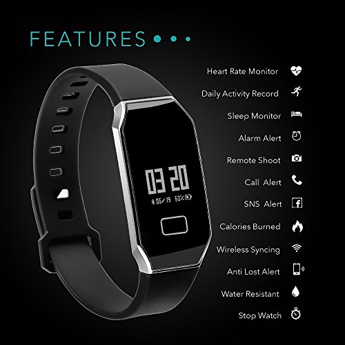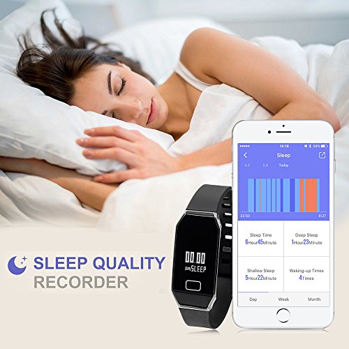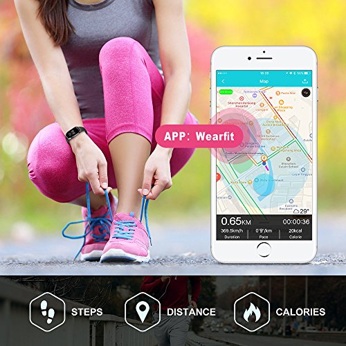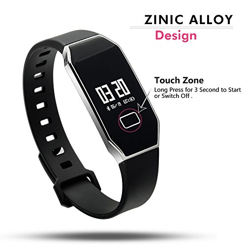 -. Feature : 【Sports Function】The information(Tracks steps/Distance/Calories) can be displayed on the Smart watch and also can synchronize to the phone APP. Built with Zinc-Alloy plating housing,the band looks very precious,it will become your perfect companion wherever you go and looks good on you no matter what you're wearing! / 【Heart Rate & Blood Pressure】With advanced monitoring technology,you can trace Heart Rate and Blood Pressure from anytime anywhere,and save the test records. You can view more health data from APP phone,makes exercise more scientific and effective. / 【Sleep Monitor】Fitness Tracker Wristband can detect how long you sleep, and how long it is deep sleep. According to the actual sleep quality, you can make a plan to adjust your lifestyle and habit to keep more effective. It can also wake you up through vibrating gently. / 【Other Functions】Oxygen test,SMS reminder,Sedentary reminder, Calling reminder,Facebook,Twitter Reminder,Vibrating alarm,Anti-lost,Watch,Remote photo taking etc.Long battery life,full charge with standby time for 10 days and more. What are you waiting for? / 【Compatibility】Nearly support all Android and IOS smart phones with Bluetooth 4.0 or above system,like Phones, Samsung,HTC, Sony, Xiaomi,etc. Download and install the free APP "Wearfit" from Apple Store or Google Play.