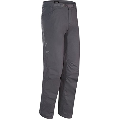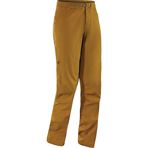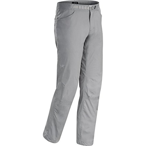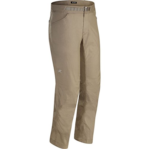 FEATURES of the Arcteryx Men's Pemberton Pant Lightweight, durable cotton/nylon blend canvas fabric with stretch for comfort and freedom of movement Articulated knees and gusseted crotch for mobility and comfort Cinchable drawcord at hem Adjustable webbing belt for a secure fit Front hand pockets, back pockets Embroidered bird logo Mid weight nylon plain weave fabric with elastane for stretch and mobility Hardwearing and breathable fabric has a DWR finish for added water repellency and stain resistanceFeature