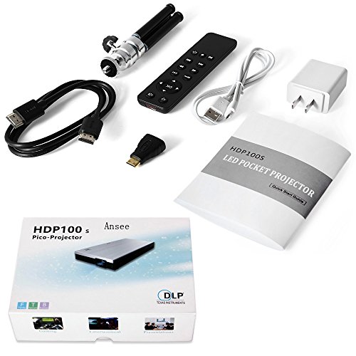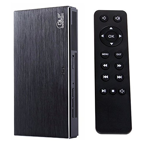 Portable Mini DLP LED Projector Multimedia Pocket Projector 1000 Lumens 854 x 480 Pixels 1080P Full HD Video Projector HDMI Home Theater Cinema Beamer (Black)