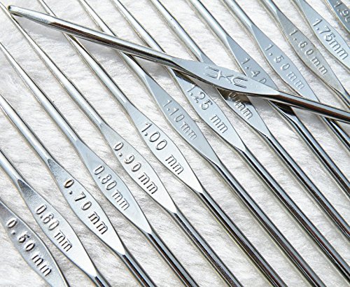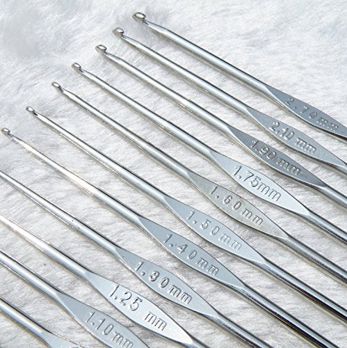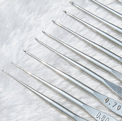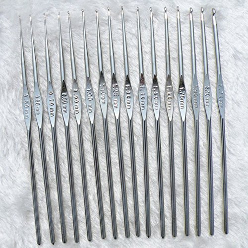 - 16 Size Steel Crochet Hooks: 0.5mm,0.6mm,0.7mm,0.8mm,0.9mm,1.0mm,1.1mm,1.25mm,1.3mm,1.4mm,1.5mm,1.6mm,1.75mm,1.9mm,2.1mm,2.7mm. Approx 12cm in length.