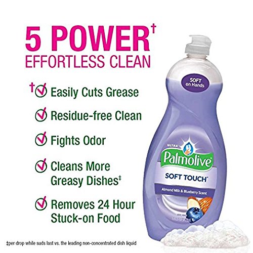 Studio : Colgate-Palmolive Company Publisher : Colgate-Palmolive Company Product Description Palmolive Ultra Soft Touch Almond Milk Blueberry Scent dish liquid is infused with nurturing ingredients to keep hands touchably soft while still providing tough-on-grease action. Formulated with Almond Milk and a delightful blueberry scent, Palmolive Ultra Soft Touch provides a cleaning that is soft on hands while leaving your dishes sparkling clean. 0
