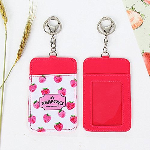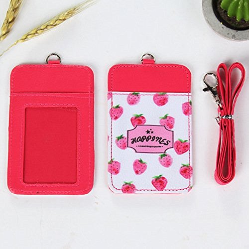 JunShop Assorted Color Faux Leather Business Id Credit Card Badge Holder Clear Pouch Case with Long Neck Strap Band Lanyard and Keychain (Red)2PCS