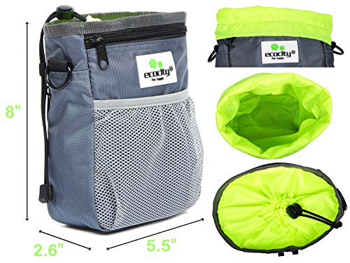 Studio : Ecocity Publisher : Ecocity Binding : Misc. Product Description EcoCity Treats Training Pouch is the perfect dog treat training bag for all dog lovers! 3 ways to wear: ? removable 42" adjustable waistband. ? removable shoulder strap. ? strong metal belt clip Product Size: L*W*H: 8*5.5*2.6" Package Includes: 1 x Dog Treat Training Pouch Quality Assurance: Not satisfied? Just let we know, we will make it right. 100% money back guarantee. 0