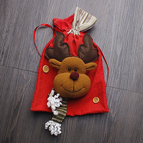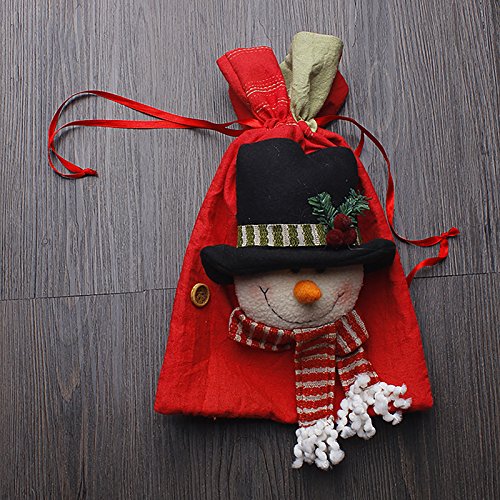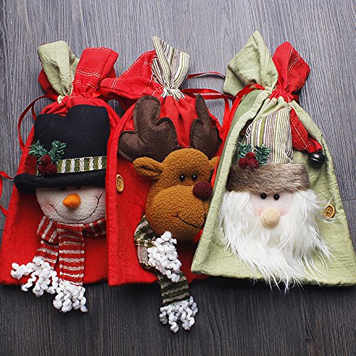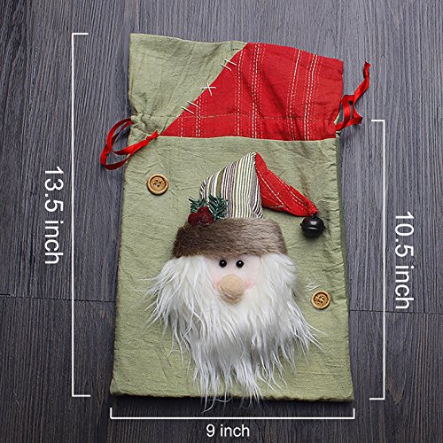 Set of 3 - Christmas Linen Gift Bags for Kids Gift wrapping 13.5" x 9" Cute 3D Plush Design - Santa, Snowman, Reindeer