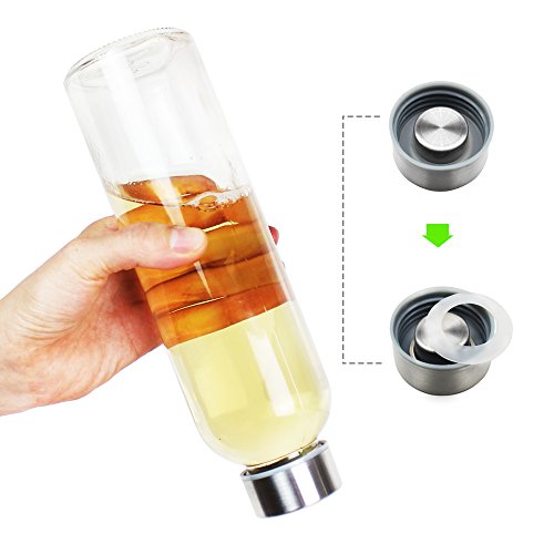 - • ECO-FRIENDLY & KEEP FRESH: Glass bottles are healthy, eco-friendly alternative to plastic bottles. Each bottle comes with a leak proof cap with stainless steel and a food grade silicone O-ring for an air-tight. Preserve the flavor of your drink, oxygen can't get in to break down the enzymes or ruin your juices.