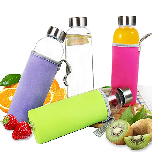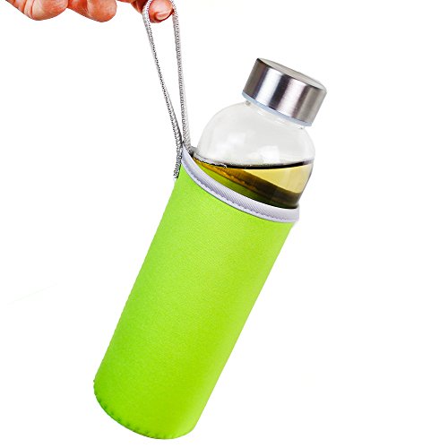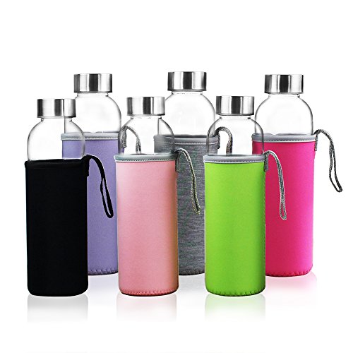 - • SLIM & CONVENIENTLY: We craft the bottles with a slim and sleek design which makes the glass bottles as an ideal travel buddy and beautiful display system. Each product includes a colorful Nylon sleeve for protection, decoration and greater insulation in temperature of water bottle. It conveniently fits into tight spaces without using too much space! It also easily and neatly fits it into your refrigerator, lunch bag or car holder.