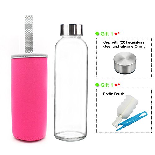 - • EASY TO CLEAN & ADDITIONAL VALUE: Glass bottles are super smooth which are easy to clean by clear water. Inside the package, additional one stainless cap and a large bottle cleaning brush are ready for your convenience.