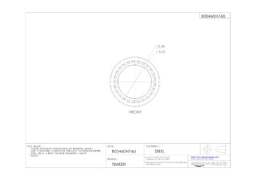 Timken JM822010 Tapered Roller Bearing, Single Cup, Standard Tolerance, Straight Outside Diameter, Steel, Inch, 6.4960" Outside Diameter, 1.0433" Width
