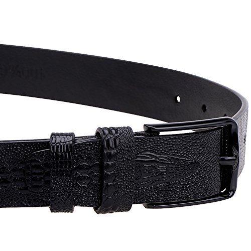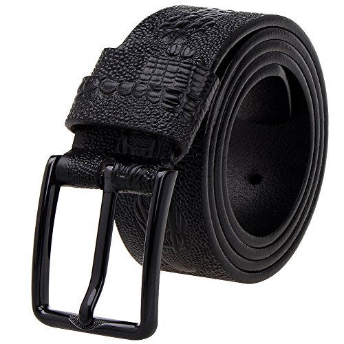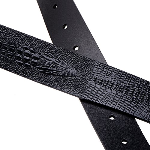 - Feature : Belt Buckle: removable square buckle. / Belt Pattern: novelty and fashion alligator embossed. / Belt width: 38mm. Color: black and brown. / Belt size: 46"-50" (115cm, 120cm ,125cm --- full length of strap). Usually the default length is 115cm (46"). If you need a longer one, please leave us a message. / Material: genuine leather strap and alloy buckle.