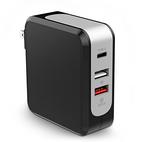 USB C Wall Charger, Jelly Comb 43W 3-Port Charger Adapter with Quick Charger 3.0 Type C PowerPort Foldable Wall Plug for iPhone iPad, Samsung Galaxy S8, LG, Moto Z, Google, Nexus, Pixel, Lumia & More