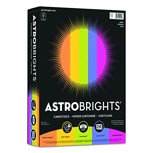 Astrobrights Colored Cardstock, 8.5” x 11”, 65 lb / 176 gsm, “Vintage” 5-Color Assortment, 250 Sheets