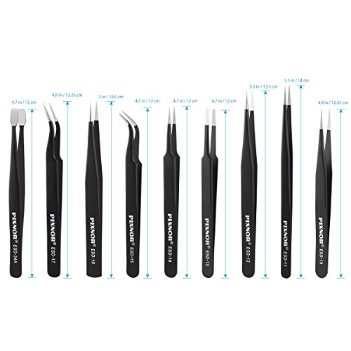 - ANTI-STATIC AND ANTI-SKID DESIGN--Electrostatic Dissipative (ESD) coating helps protect delicate electronic components from static damage. Matte black surface finish provides excellent non-slip handling. Precision machined for exact alignment and a perfect grip at the tips.
