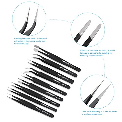 ESD Tweezers Tools Kit, PIXNOR 9 Pieces Precision Anti-Static Non-Magnetic Stainless Steel Tweezers with Storage Bag for Electronics, Jewelry-Making, Laboratory Work, Hobbies