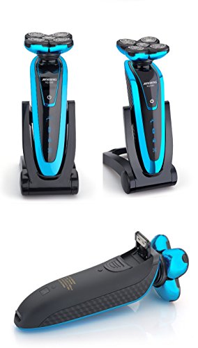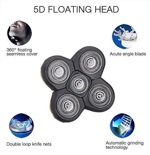 SMOOTH AND FAST SHAVING:The 5 different cutting heads offer high flexibility in terms of all directions which allows for easier shaving of every curve of your face.The double layer blades consists of rounded edges that are able to shave fast and clean.