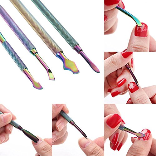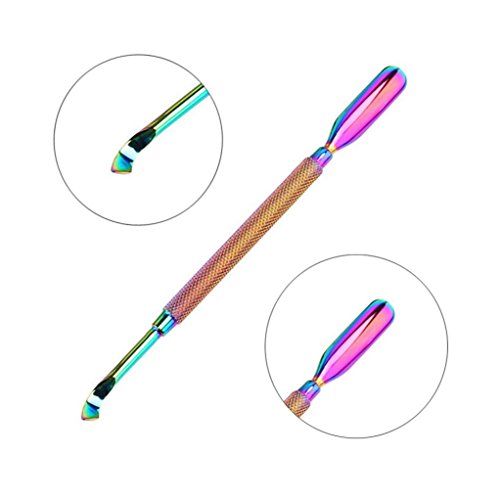 Features: Material:100% stainless Length:as shown 100% Guaranteed for craftsmanship and quality Dual-end pusher,2 in 1 Carefully designed, excellent for use The spoon-like end (curved-end) is used for pushing cuticles - the design easily helps to shape the cuticles Great for cleaning under nail cuticle or dirt Suitable for Professional Salon use or home use