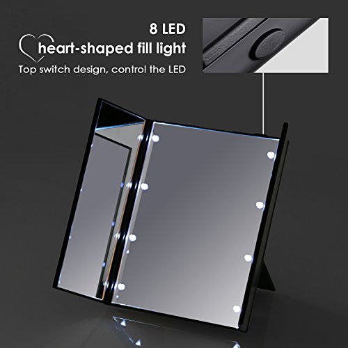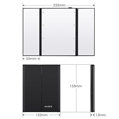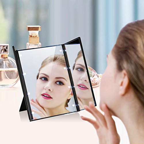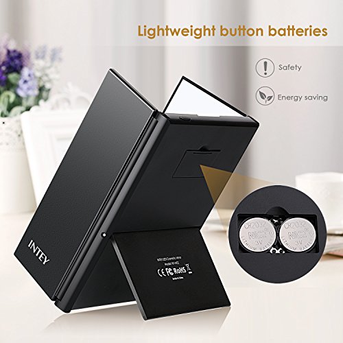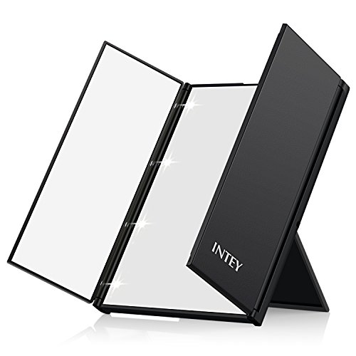 INTEY Travel Makeup Mirror Lighted LED Mirror Portable & Tri Foldable Cosmetic Vanity Mirror (Black)
