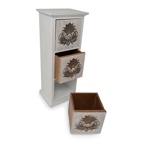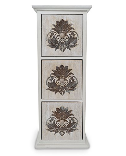 gbHome Decorative 3 Drawer Wooden Treasure Box With Engraved Art, Jewelry & Memento Storage Case, Wood Holder For Teabags Pins Coins and Miscellaneous Trinket Container, Rustic Antique Distressed Look