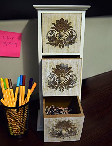 - VERSATILE: A flawless wooden storage box for your home and office. 3 removable drawers for storing jewelry, paperclips, coins, mementos, teabags, dried herbs, pins, sewing supplies, game pieces, card collections, letters, photos, keepsakes, miscellaneous trinkets and other small items. Perfect for your bedroom dressing table, living room or bedroom side table, kitchen counter, and office desk or cubicle.
