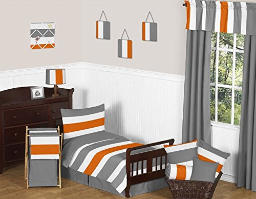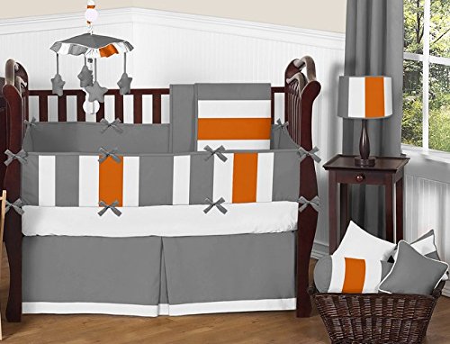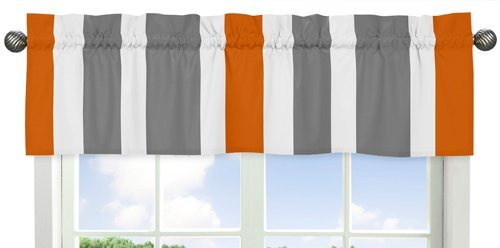 Sweet Jojo Designs Gray, Orange and White Window Treatment Valance for Stripes Bedding Collection