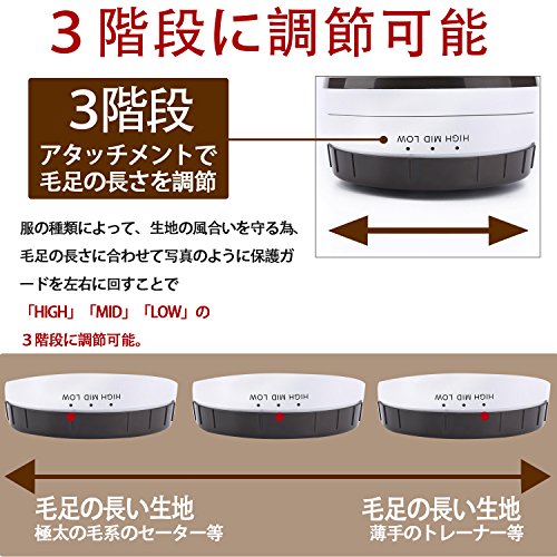 3段階風合いガード調整可能:衣類の生地が傷むのを防いで、ふんわりと仕上げてくれる「風合いガード」機能がついた毛玉取り機です。調節ダイヤルを左右に回すことで、風合いガードの高さを決めます。どんな衣服にも対応する段階調整です。しっかりと段階表記もあるのでご安心ください。