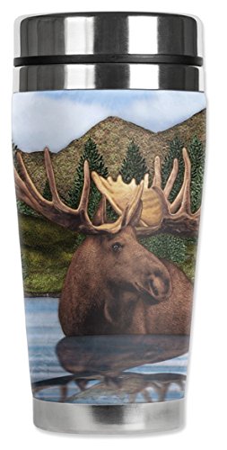 Mugzie 1221-MAX "Moose Pond" Stainless Steel Travel Mug with Insulated Wetsuit Cover, 20 oz, Black