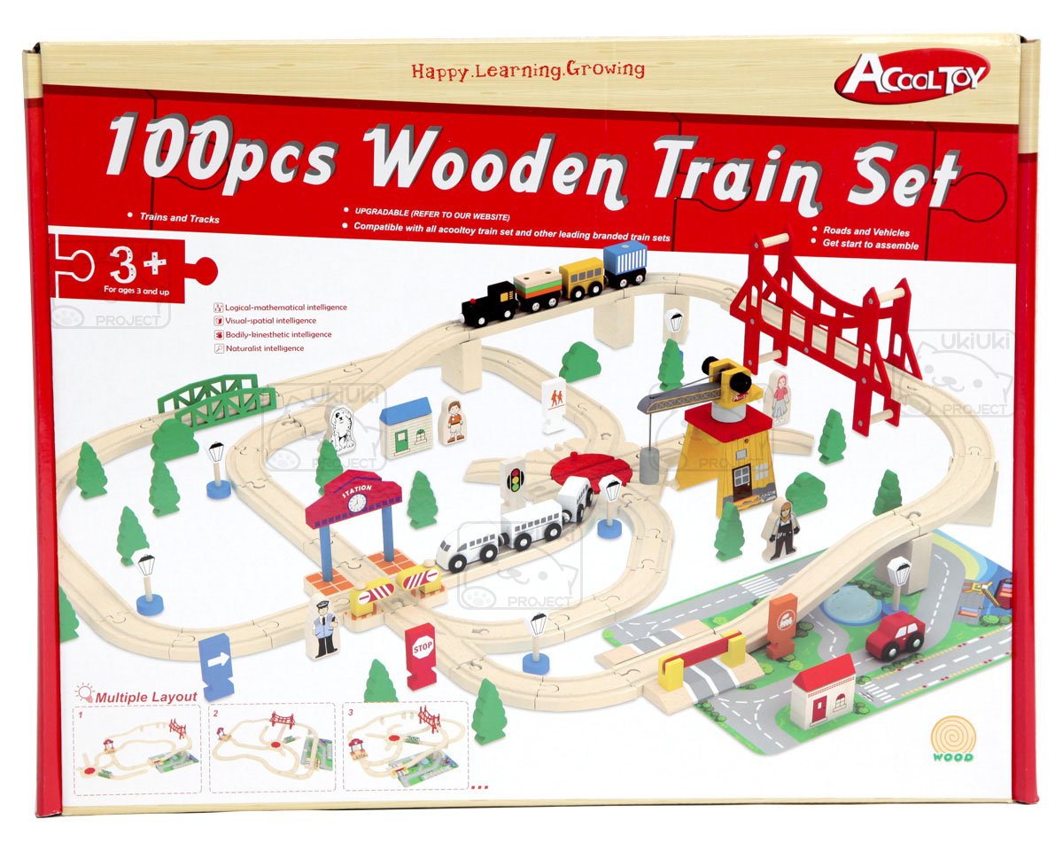 Wooden rail Trains (Train) set 100 piece [Thomas ・ BRIO (Brio) corresponding]