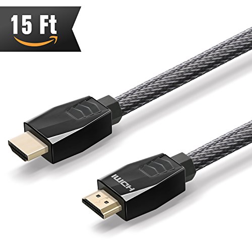 HDMI Cable 15 ft ( The Highest Speed ) 4K HDMI 2.0 Cord, Nylon Braided Cable 18Gbs Support Ethernet, ARC, UHD, 3D, HDR for 4K/HD TVs, PS4/3, Xbox one, PC, Displays and More + Right Angle Adapter