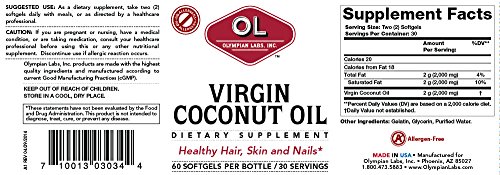-. Binding : Health and Beauty -. Brand : Olympian Labs -. EAN : 0710013030344 -. Feature : Great tasting gourmet loose leaf tea / A mystery out of the Orient to you / This traditional tea is blended with the richness of the large leaf Japanese Sencha Green Tea / A refreshing tea with full-bodied undertones, wonderfully accents light dishes with its unique, roasted aroma and flavor -. IsAdultProduct : 0 -. Label : Olympian Labs -. Manufacturer : Olympian Labs -. MPN : 03034 -. NumberOfItems : 2 -. PackageQuantity : 2 -. PartNumber : 03034 -. ProductGroup : Health and Beauty -. ProductTypeName : HEALTH_PERSONAL_CARE -. Publisher : Olympian Labs -. ReleaseDate : 2015-06-22 -. Studio : Olympian Labs -. Title : Olympian Labs Virgin Coconut Oil, 1000 mg, 60 Softgels (Pack of 2) -. UPC : 710013030344