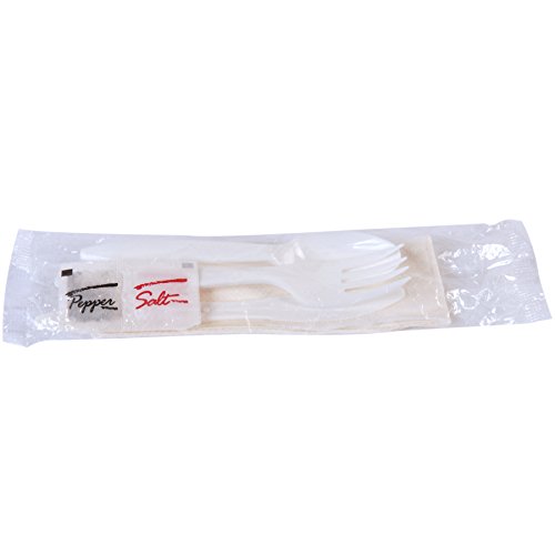 Dixie CMP26NSPC Medium Weight Polypropylene Fork, Knife, Teaspoon, Napkin, Salt and Pepper Cutlery Kit, White (Case of 250)