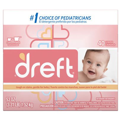 Dreft Baby Original Scent Powder Detergent 40 Loads 53 OZ (Pack of 12)