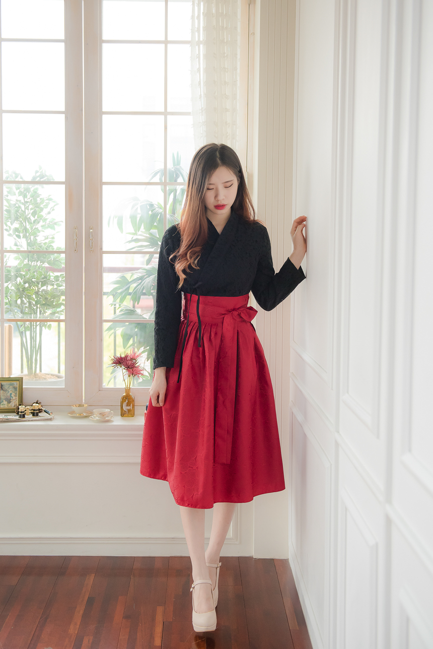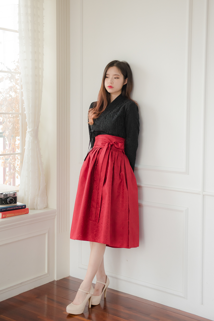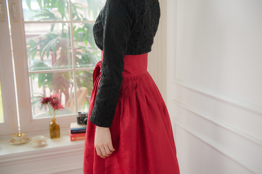 꽃닮 허리치마 빨강장미 양단원단