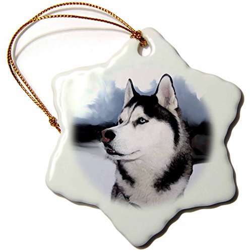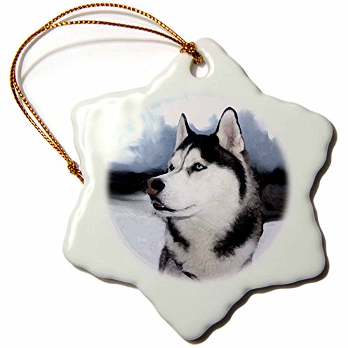 3drose Siberian Husky Snowflake Porcelain Ornament, 3-Inch